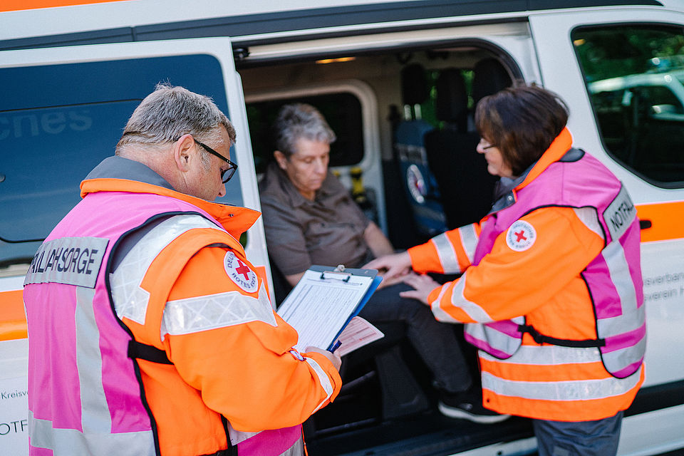In allen akuten psychischen Krisensituationen leisten ehrenamtliche Kriseninterventionshelfer des Deutschen Roten Kreuzes diese psychosoziale Akuthilfe für Betroffene. Sie sind da, hören zu, trösten und begleiten. Sie kümmern sich aber auch um erste organisatorische Belange, verständigen Angehörige und Freunde, sorgen für ein Unterkommen oder helfen bei den ersten Schritten, die in solchen Fällen getan werden müssen. Deshalb gehen die Mitarbeitenden, wann immer dies möglich ist, auch zu zweit in den Einsatz. Dadurch können sowohl die individuelle, persönliche Betreuung als auch die organisatorischen Aufgaben bewältigt bzw. das soziale Netz oder weiterführende Hilfen mobilisiert werden. Die Mitarbeitenden der Psychosozialen Notfallversorgung treffen auf Menschen, die gerade mit schweren Schicksalsschlägen konfrontiert wurden. Oftmals ist diese Arbeit sehr berührend, traurig und belastend. Deshalb haben die Kriseninterventionshelfer auch eine sehr spezifische und anspruchsvolle Ausbildung durchlaufen. Dabei haben sie erlernt, sich ihrer Rolle bewusst zu sein und sich nicht mit dem Schicksal der Betroffenen zu identifizieren. Das Motto ist dabei „Mitfühlen – aber nicht mitleiden.“