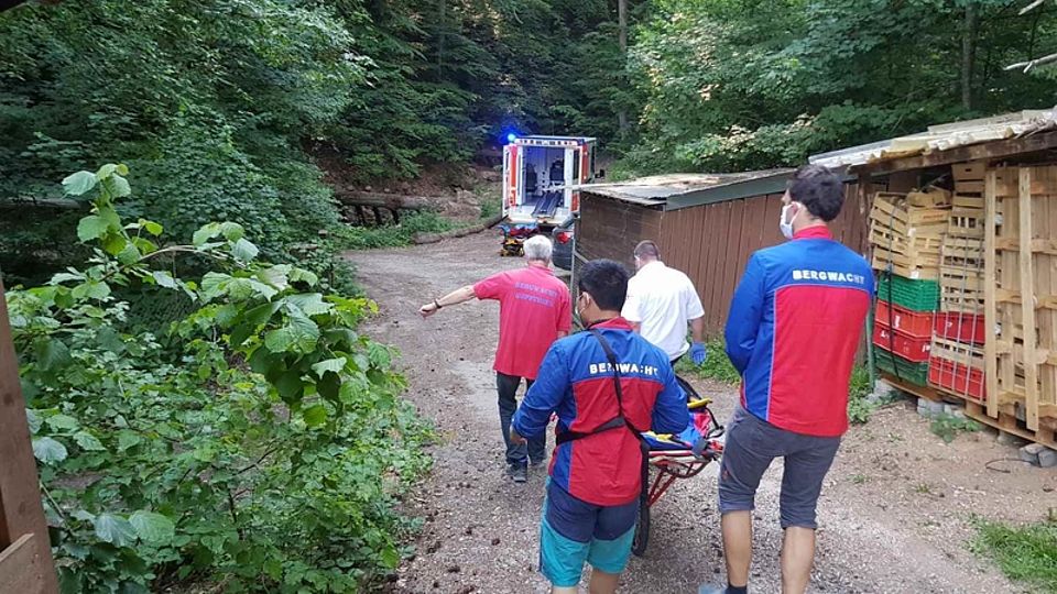 Unglücklich ging für einen 82-Jährigen die Kirschernte am Pfingstmontag aus. Auf einem steilen Gartengrundstück am Ortsrand von Ebersbach stürzte der Mann aus ungefähr drei Metern Höhe und verletzte sich schwer. Durch Mitglieder der Malteser sowie einen Notarzt erstversorgt, übernahm die Bergwacht den Transport hinab zum Rettungswagen. Die wenigen hundert Meter wurden in der Gebirgstrage mit angebrachtem Rad absolviert. Der Rettungsdienst brachte den Patienten mit einer Gehirnerschütterung und einem Beckentrauma in die Klinik.