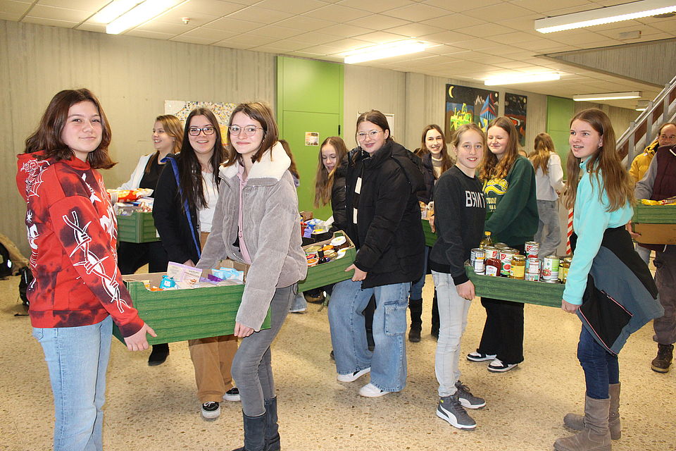 Dank der Spendenaktion konnten die zahlreichen Kunden des Tafelladens rechtzeitig zum Fest Schokolade und Lebkuchen, Punsch und Kekse einkaufen. „Macht weiter so!“, bat Sabine Rauch die Schüler*innen und schleppte mit ihnen gemeinsam die vielen Kisten und Schachteln zum Auto der Tafel. „Für uns ist das wie ein vorgezogenes Weihnachtsfest!“, freute sie sich. Wie auch über eine private Spende einer Adelbergerin. „Ich konnte für 150 Euro einkaufen – vielen Dank!“