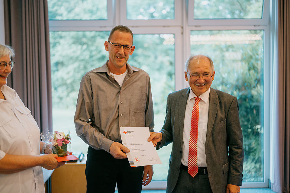 Der Abend biete aber auch Gelegenheit, „über uns nachzudenken. Wir anerkennen das Ehrenamt, das ist nicht selbstverständlich. Das zarte Pflänzchen will regelmäßig gegossen werden.“ Der Kreisverband sei „innerhalb des DRK-Landesverbandes ein mittelgroßer, aber mit dem gesamten Spektrum der DRK-Arbeit im Land. Dazu braucht es engagierte Menschen im Haupt- und Ehrenamt.“