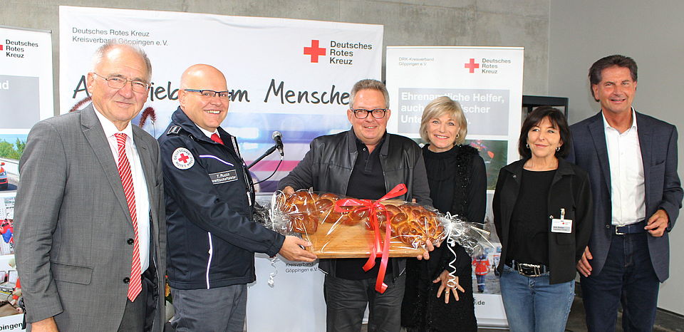 Bettina und Günter Hommel, die Vermieter des DRK in Eislingen, waren nicht mit leeren Händen gekommen. Sie überreichten symbolisch den Schlüssel – ein großer Hefezopf.