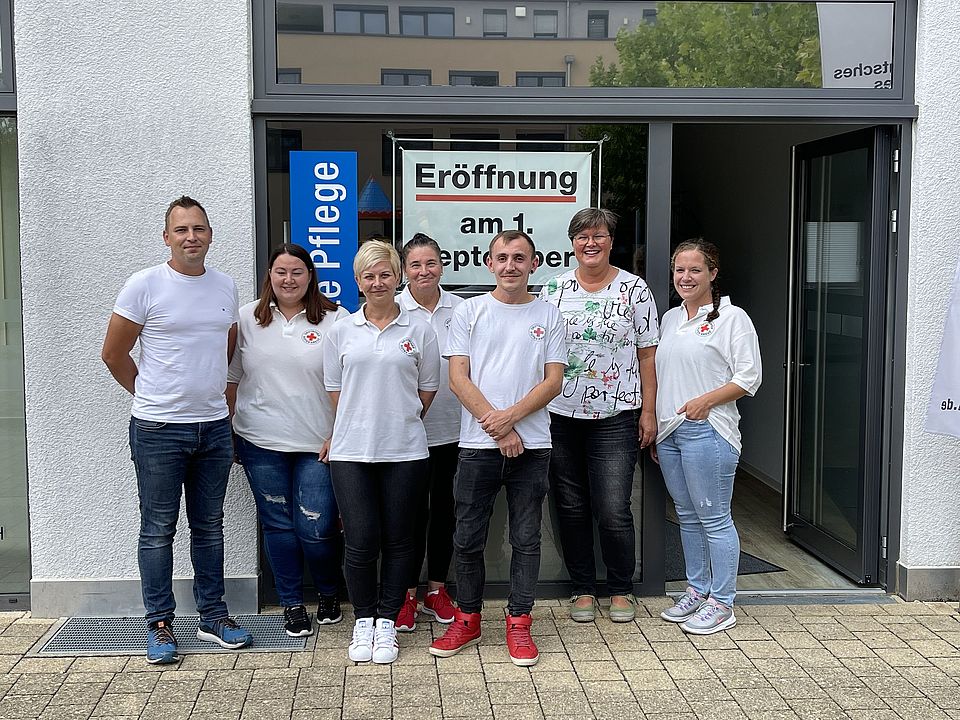 Dem Pflegedienstleiter Amadeus Kothe stehen mit Jenny Krejci und Verena Honisch zwei examinierte Pflegefachkräfte zur Seite. Das Team verstärken die Pflegehelfer*in Marijana Cansevic und Nico Baur, die in wenigen Wochen eine Ausbildung zur Pflegefachkraft beginnen. „Wir können unsere pflegerischen Angebote aufrechterhalten und weiter ausbauen, weil wir unsere Fach- und Nachwuchskräfte selbst ausbilden“, stellt Alexander Sparhuber fest – „auch Quereinsteiger*innen“. Der Geschäftsführer des DRK-Kreisverbandes betonte bei der Eröffnung: „Dies ist ein wichtiger Tag für das DRK, aber auch für die Menschen, denen wir wichtige Hilfestellungen geben können.“ Die werden vom engagierten Team des APD kompetent geleistet.