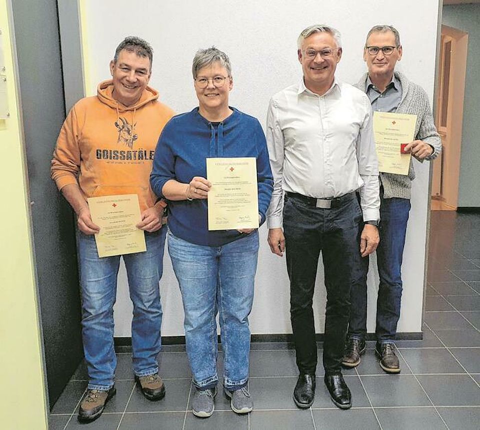 Für mehrmalige Blutspenden hat die Gemeinde Bad Ditzenbach Hendrik Kuhn (links, zehn Spenden), Margit Backes (Zweite von links, 75 Spenden) und Reinhold Auth (rechts, 50 Spenden) im Beisein von Bürgermeister Herbert Juhn geehrt.