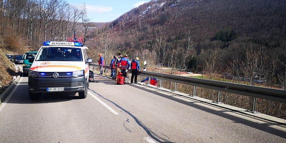 Geislingen - Die Bergwacht-Bereitschaften Geislingen-Wiesensteig und Göppingen haben am Samstagmittag einen 79-Jährigen gerettet, der an der Stöttener Steige einen Abhang hinuntergestürzt war. Der Mann hatte laut Bergwacht versucht, neben der Straße eine verlorene Radkappe aufzusammeln; dabei stürzte er mehrere Meter ab. Die Beifahrerin alarmierte die Polizei. Ein Ersthelfer sicherte den Mann mit einem Seil bis zum Eintreffen der Bergwacht. Die Bergretter seilten den Mann mit einem Rettungsgurt ab und übergaben ihn dem Notarzt. Der 79-Jährige wurde mit leichten Verletzungen ins Krankenhaus gebracht. Während des Einsatzes war die Stöttener Steige zeitweise voll gesperrt. Die Bergwachten Geislingen-Wiesensteig und Göppingen waren mit 15 Einsatzkräften etwa eine Stunde lang im Einsatz.