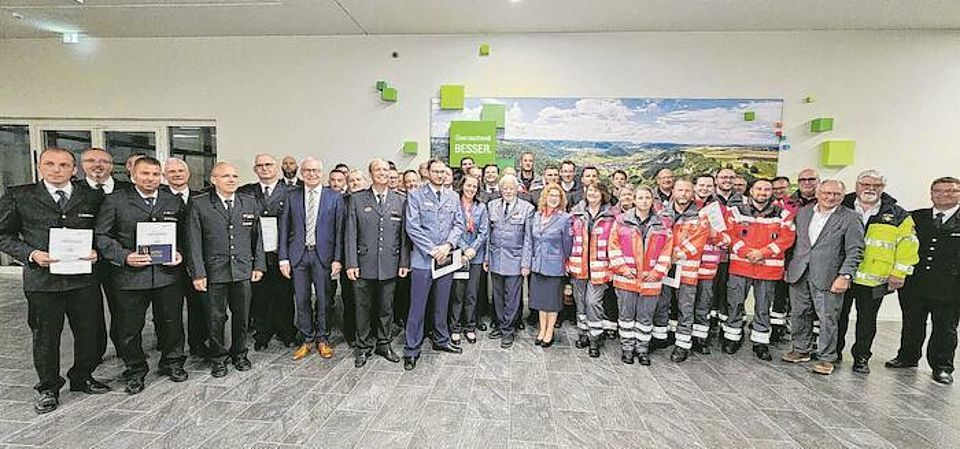 Landrat Edgar Wolff würdigte die selbstlose Bereitschaft der Feuerwehrleute und Rettungsdienstangehörigen. Ihr unverzichtbares Engagement habe Vorbildfunktion für die Gesellschaft und zeige die Wichtigkeit von Zusammenhalt und Solidarität auf.