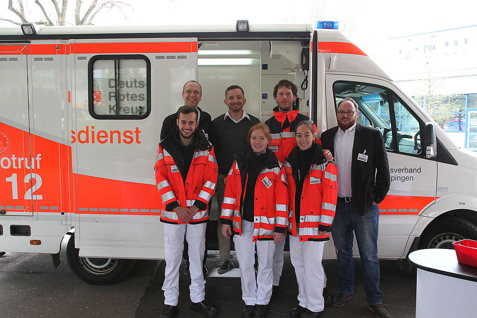 Während sich der Informationsstand des DRK im Obergeschoss der Gewerblichen Schule befindet, können die jungen Besucher und ihre Eltern im Eingangsbereich einen Rettungswagen und ein Fahrzeug des Fahrdienstes ansehen. „Das findet immer sehr viel Interesse“, so Ben Brodbeck, Lehrrettungsassistent bei der Rettungswache in Göppingen. Gerade im Rettungsdienst kann auch er von einer starken Nachfrage nach Ausbildungsplätzen berichten. Für den Ausbildungsstart in diesem Jahr haben sich 161 junge Menschen auf sechs Plätze beworben. „Das war ein absoluter Rekord“, so Ben Brodbeck. Mit Hilfe eines Assessment-Verfahren wurden dann die zukünftigen Auszubildenden ausgewählt. „Darunter auch Kandidaten, die vorab einen Freiwilligendienst beim DRK gemacht haben.“