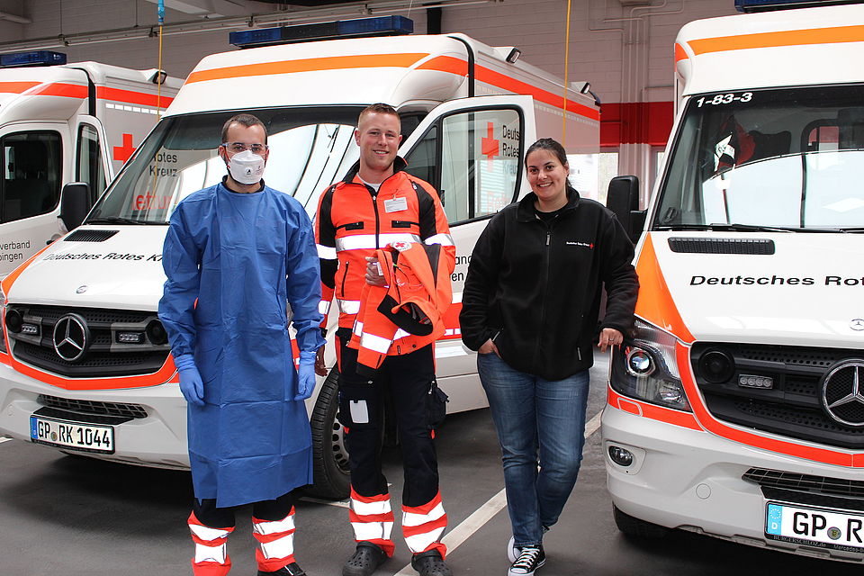 Die gute Nachricht vorneweg: Trotz zahlreicher an Covid-19 erkrankter Patienten, die die Mitarbeitenden des DRK-Rettungsdienstes in den vergangenen Wochen versorgten und zu den Kliniken fuhren, hat sich bislang kein Rettungs- oder Notfallsanitäter mit der hochansteckenden Krankheit infiziert. „Die Notfallversorgung im Landkreis ist also weiter gewährleistet. Unsere Mitarbeitenden arbeiten professionell und schützen sich entsprechend“, betont Hannah Roder. Sie leitet die DRK-Rettungswache Göppingen mit über 66 haupt- und zahlreichen ehrenamtlichen Kräften im Rettungsdienst und Krankentransport. „Der Schutz unserer Mitarbeitenden steht an oberster Stelle“, betont sie. Bei allen Einsätzen tragen die Rettungskräfte deshalb grundsätzlich einen Mundschutz, wie er üblicherweise bei Operationen getragen wird und Schutzbrillen gegen eine Tröpfcheninfektion.
