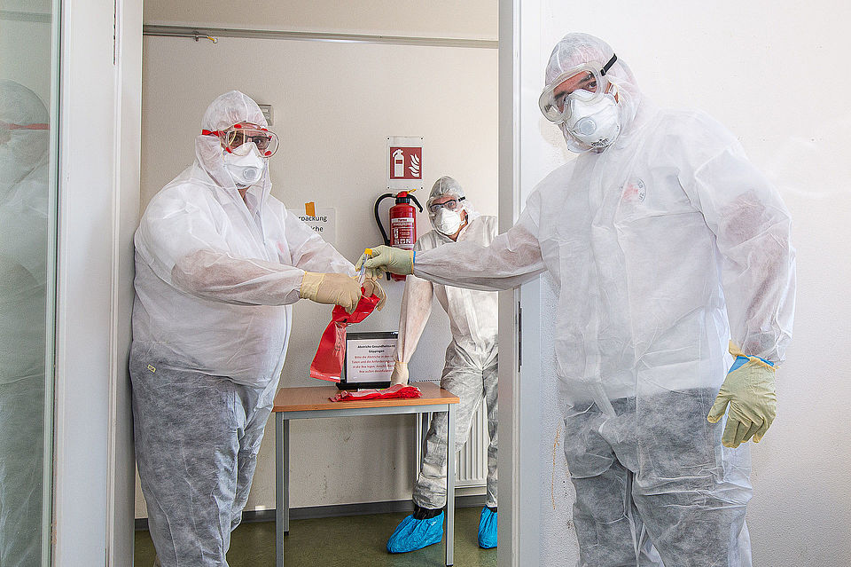 Zum Zeitpunkt des Interviews war bereits klar, dass für die haupt- und ehrenamtlichen Helfer auf die Dauer Schutzkleidung nicht im ausreichenden Maße zur Verfügung steht wird. Wie es dann weitergeht? „Wir können keinerlei Prognosen stellen. Die Situation stellt sich jeden Tag neu.“ Klar sei aber, dass das DRK seine freiwilligen Kräfte abziehen werde, wenn sie nicht „entsprechend geschützt werden können“.