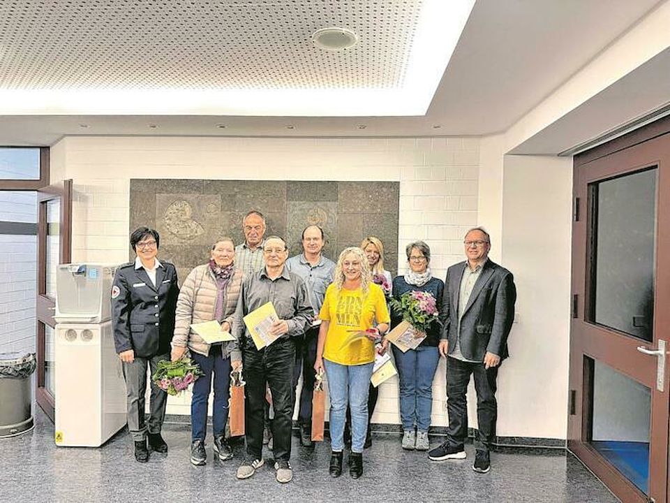 Hattenhofen. Wer oft Blut spendet, wird geehrt. Dies geschieht in diesen Wochen in allen Gemeinden – in Hattenhofen waren es jetzt außergewöhnlich viele. Ein paar hundert Spenden, so Bürgermeister Jochen Reutter, haben allein die sieben gespendet, die zur Ehrung in öffentlicher Gemeinderatssitzung gekommen sind. An der Spitze Martin Oppolzer mit sage und schreibe 125 Blutspenden, gefolgt von Sybille Hagmann mit 75, Rainer Haller mit 50, Martina Greiner und Tamara Hamann mit je 25. Zehn Mal gespendet haben Bianca Illner und Günter Seyfang. Und es gibt noch weitere Spender, die ihre Ehrung auf anderem Weg bekommen. Bürgermeister Reutter nutzte die Gelegenheit, zu den Blutspendeterminen in Hattenhofen aufzurufen, von denen einer traditionell am zweiten Weihnachtsfeiertag angeboten wird. Und beliebt ist: an die 220 Blutspenden kamen in den Vorjahren zustande. Er lobt: Uneigennützig und ohne zu fragen, spendeten die Geehrten und andere Blut, „Sie spenden für Menschen, die Sie nicht kennen“. Bettina Steinbacher vom DRK-Ortsverband schloss sich den Dankesworten an und überreichte die Ehrungen.