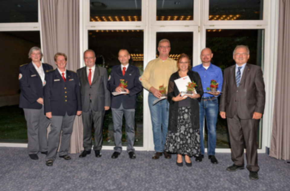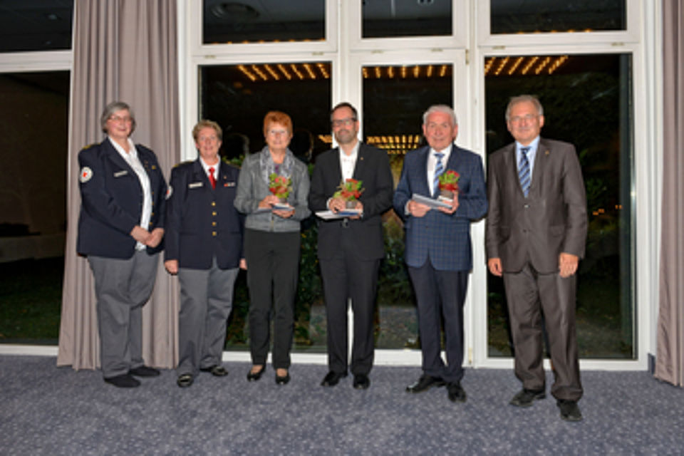 Abschließend wurden drei Leistungsspangen des DRK in Silber verliehen. Die Würdenträger haben durch ihren Einsatz ein Menschenleben gerettet. In allen drei Fällen wurde dieser Erfolg auf das Konto des „Helfer vor Ort“-Systems in der Rettungskette verbucht. So konnte ein einjähriges Kind, das bereits tiefgrau und leblos mit dem Gesicht im Teichwasser lag, durch die sofort eingeleitete Reanimation gerettet werden.