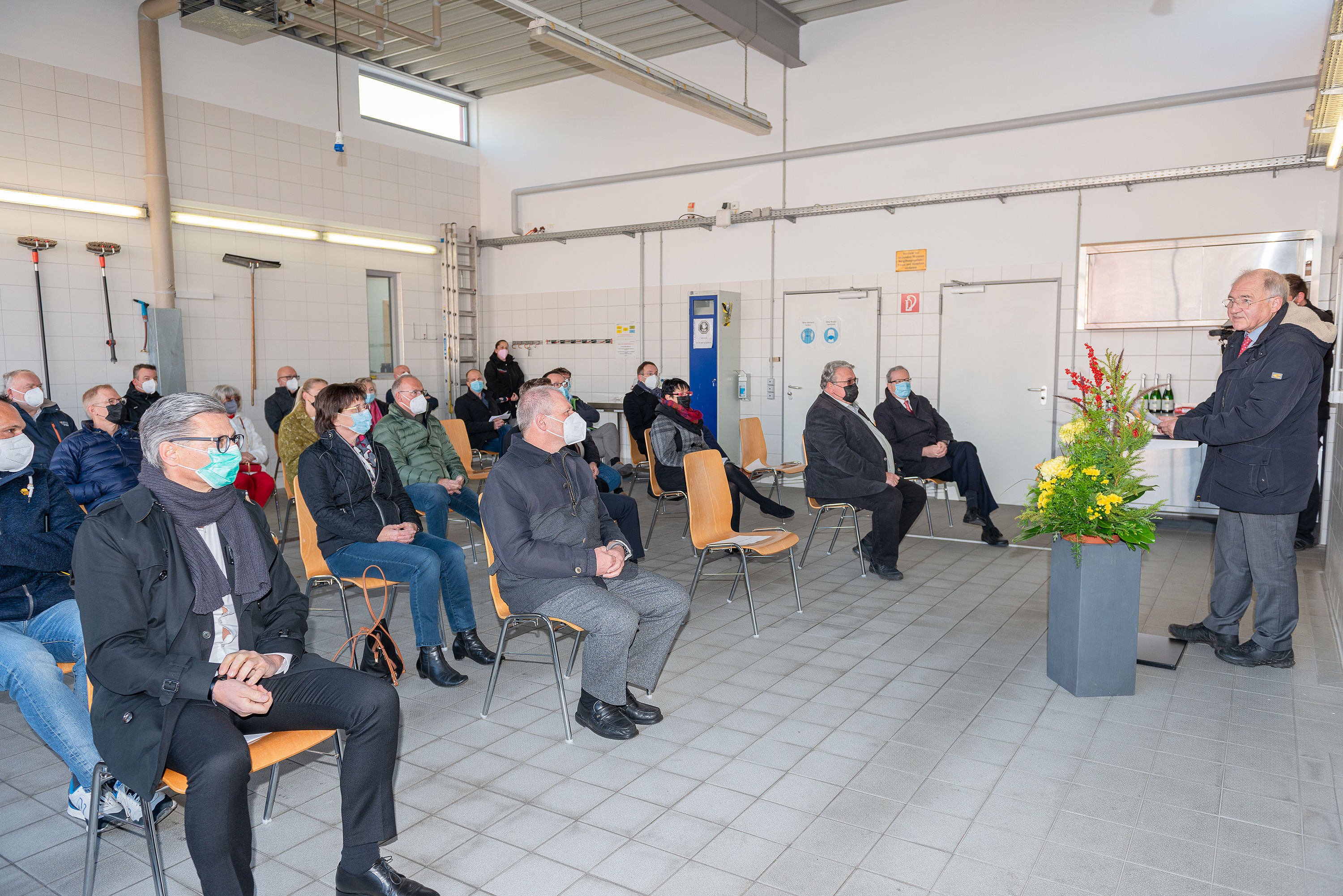Bei einem anschließenden Rundgang besichtigten die Gäste der Einweihung der DRK-Rettungswache die alten und die neuen Räume und ließen sich anschließend in der neuen Fahrzeughalle einen kleinen Imbiss schmecken – unter Wahrung der 3-G-Corona-Vorgaben.