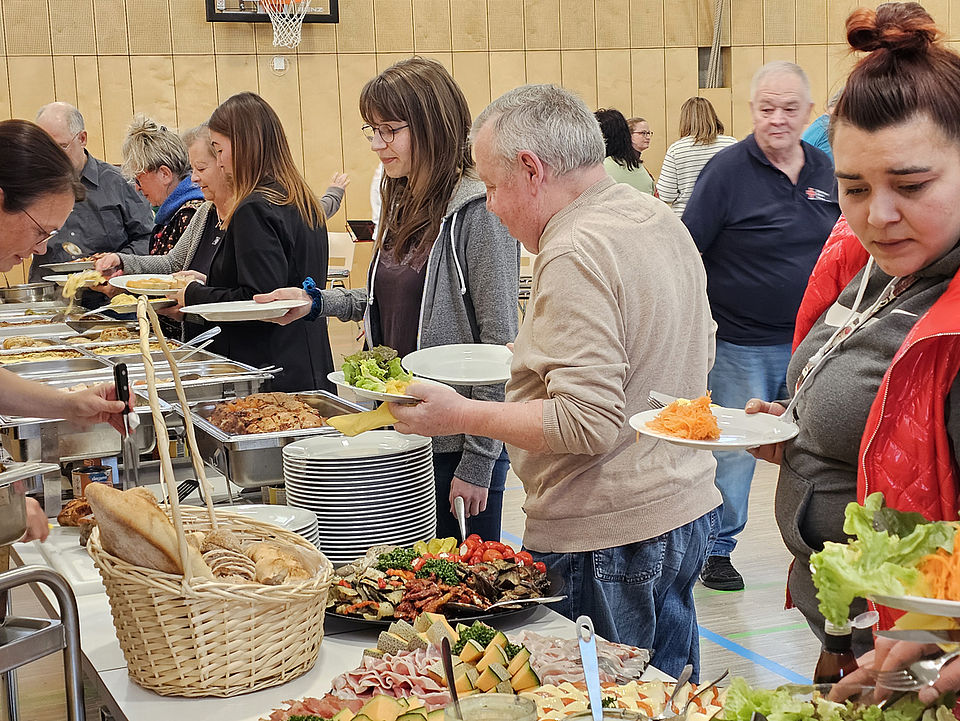Für fünf Jahre Tätigkeit wurden Hilde Eberhardt und Nadine Joffrion geehrt, für zehn Jahre Monika Weiß und Ramona Ehring. Im Anschluss hieß es: „Das Büffet ist eröffnet“ und was der Partyservice Esslinger aus Aufhausen an Kulinarischem für Auge und Gaumen auffuhr, ließ keinerlei Wünsche offen. Für die musikalische Untermalung des Abends sorgte die Akkordeongruppe Eschenbach.
