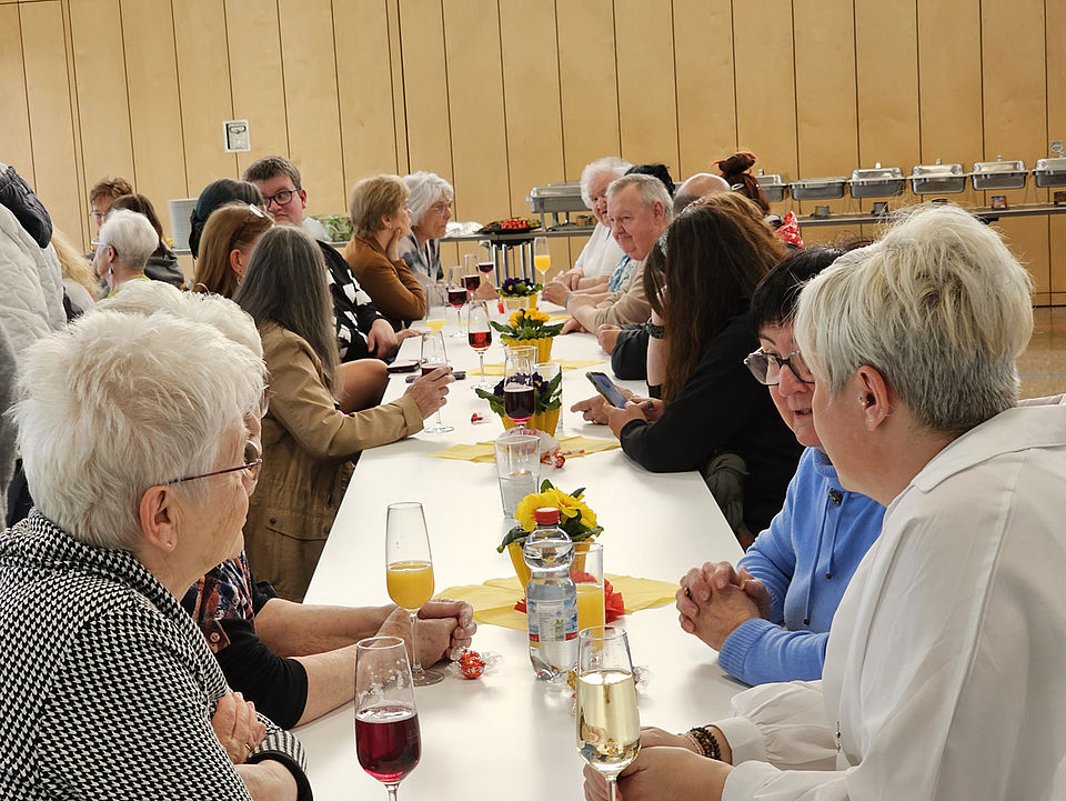 Blauer Himmel, Sonnenschein, gute Laune, leckeres Essen, unterhaltsame Musik – genauso muss ein Frühlingsfest sein, das dazu gedacht ist, all jenen „Dankeschön“ zu sagen, die sich auf vielfältige Weise für ihre Mitmenschen engagieren. Einmal mehr hatten Traudl Lew, Kreissozialleiterin im DRK-Kreisverband Göppingen und ihre Stellvertreterin Rebecca Metzger in die Technotherm-Halle nach Eschenbach eingeladen. Sie konnten rund 70 ehrenamtliche Rotkreuzler*innen begrüßen, die sich bei Bewegungsprogrammen, in Familientreffs, bei den Therapiehunden und in den DRK-Läden einbringen. Auch der DRK-Kreisgeschäftsführer Alexander Sparhuber ließ es sich nicht nehmen, vor Ort zu sein und allen seinen Dank für die hervorragend geleistete Arbeit auszusprechen. Sie zeige, dass mit Kompetenz und Engagement vor Ort viel bewegt werden könne. Gemeinsam mit dem Landkreis und den Kommunen würden weiterhin Familientreffs in Ebersbach, Uhingen und Deggingen betrieben, zu denen Mütter, Väter und Großeltern mit Kindern kommen. Statt der Eltern-Baby-Kurse seien nun mit offenen Babytreffs ein niederschwelliges Angebot eingeführt worden, das gut angenommen wird. „Die drei DRK-Kleiderläden in Göppingen, Geislingen und Eberbach erfreuen sich unverändert reger Nachfrage“, berichtete Sparhuber außerdem und tat auch seine Freude darüber kund, dass Edeka-Gebauer und Spielwaren Rau nagelneue Gesellschaftsspiele gespendet hätten. Spielsachen, die in den Kleiderläden ebenfalls verkauft werden und stark nachgefragt sind, seien nämlich leider immer knapp. Auch im Ebersbacher Tafelladen sei die Nachfrage unverändert groß, weshalb man sich über regelmäßige Spender sehr gefreut habe und freue. Auch von den mittlerweile 16 Therapiehundeteams, die in Kindergärten, Seniorenzentren und auch Privatpersonen zum Einsatz kommen, gab es Gutes zu berichten. 2500 Euro von der NWZ-Aktion „Gute Taten“ ermöglichen die Anschaffung neuer Ausrüstungen für die Ausbildung. Auch die „Gesundheitsförderung“ erhielt 2500 Euro von der Aktion. Es sollen Redondo-Bälle und Thera-Bänder für die Bewegungs-Kurse beschafft werden. Erfreulicherweise konnten zwei neue Gymnastikgruppen in Dürnau und Gruibingen installiert werden. Außerdem wurde das Nordic Walking wiederbelebt, „Yoga im Sitzen“, ein Angebot für Menschen mit Bewegungseinschränkung, initiiert. Ganz neu und schon beliebt ist auch ein E-Bike-Sicherheitstraining für Senioren.