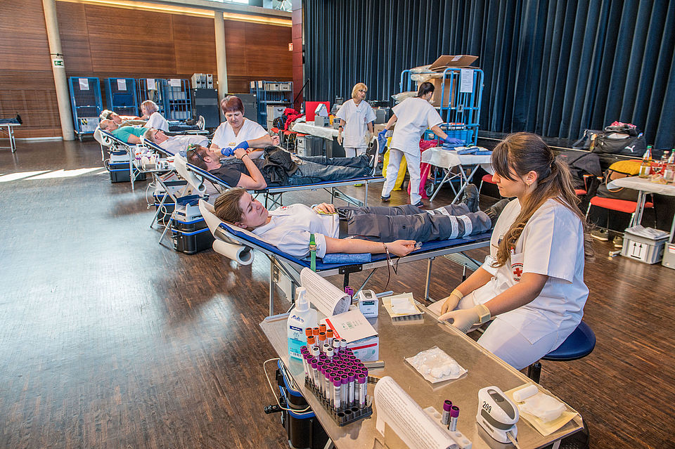 Auffallend in Eislingen war „die extrem hohe Zahl von Erstspendern“, stellte Thomas Ruckh fest. Der Vorsitzende des DRK-Ortsvereines war den ganzen Termin über in der Stadthalle, übernahm die Verantwortung und hörte von den Menschen immer wieder, dass sie ganz bewusst zum Blutspenden gekommen waren. „Wir wollen helfen und möchten uns einbringen“, so die Aussage. Fast schien es, dass sie Blut spendeten „gegen das Gefühl der Hilflosigkeit gegenüber einer nie dagewesenen Situation“. So waren viele Menschen gekommen, um in der Eislingen Stadthalle unter ganz besonderen Bedingungen ihr Blut zu spenden.