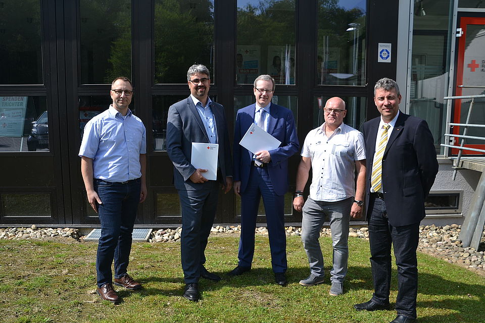 Auch Daniel Groß, stellvertretender Landesgeschäftsführer des ASB Baden-Württemberg, war zur feierlichen Unterzeichnung gekommen. DRK-Kreisgeschäftsführer Alexander Sparhuber beschrieb dabei die Vorarbeiten, die am Standort Süßen vorgenommen wurden, damit die Logistik in der Rettungswache reibungslos funktionieren kann: „Schon bei der Inbetriebnahme des Notarzteinsatzfahrzeuges wurde das Gebäude um einen Container erweitert und unsere Erfahrungen damit waren gut“. So wurden nun die die Räumlichkeiten in Süßen gemeinsam mit dem ASB wiederum um einen Container erweitert.