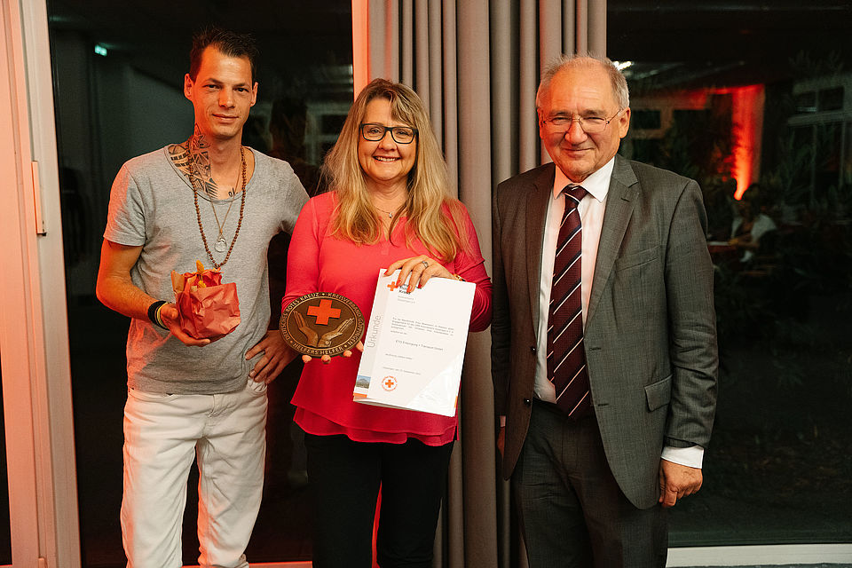 „Ich freue mich, dass ich hier stehen darf und dass ich so engagierte Mitarbeiter habe“, bedankte sich Gabriele Schwarz für die Auszeichnung. „Es ist selbstverständlich, dass wir diese dann dabei unterstützen, anderen zu helfen. „Seit einiger Zeit schaltet die Schwarz-Gruppe Inserate im Info-Magazin „Kreuz + Quer“ und unterstützt das DRK so bei der Öffentlichkeitsarbeit“, fügt der DRK-Kreisverbandspräsident Peter Hofelich hinzu.