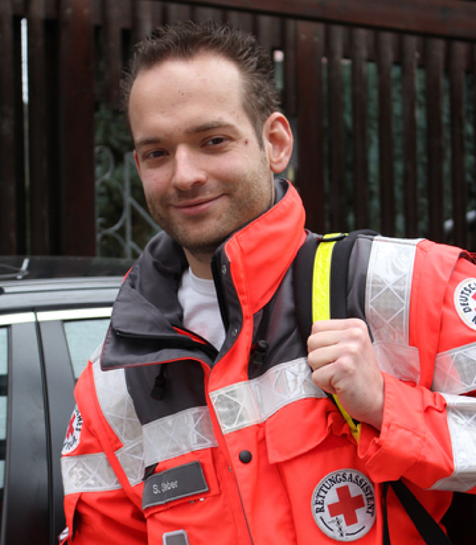 „Wenn ein Notruf in der Integrierten Leitstelle eingeht, werden wir im genannten Ort immer auch parallel alarmiert“, erklärt der 28-Jährige. Dann geht er schnell zu seinem Auto, zieht die rote Rot-Kreuz-Jacke an und fährt mit seinem Notfallrucksack, der stets gepackt bereit steht, direkt zum Ort des Hilferufs. „Wir sind immer ein paar Minuten schneller vor Ort als der Rettungswagen“, weiß Sven Sieber. Und diese wenigen Minuten können mitunter entscheidend sein.