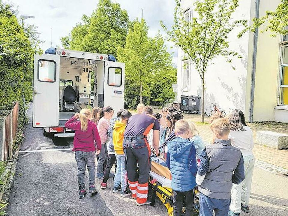„Wir durften selber mit anpacken und ausprobieren, wie eine Person in Notlage transportiert wird“, berichten die kleinen Bezgenrieter begeistert. „Auch das EKG und das Stethoskop legten wir an und bekamen seine Funktionen gut erklärt.“