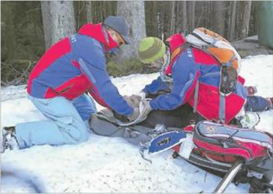Dieses Szenario war zum Glück nur eine Übung. Neben diesem Unfall wurden bei der dreitägigen Skiausbildung der Bergwacht Geislingen-Wiesensteig im Skigebiet Spitzingsee noch viele andere Verletzungsmuster durchgespielt: Wenn sich etwa ein Skifahrer beim Sturz den Skistock in den Bauch rammt, sich an der Wirbelsäule verletzt oder eine Kopfverletzung zuzieht.