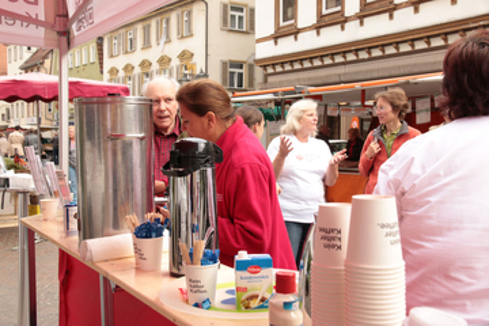 Trotzdem gibt es einige Passanten, die das Angebot, am DRK-Stand auf den Wochenmärkten in Göppingen und Geislingen ein Tässchen Kaffee zu trinken, mit Freuden akzeptieren. „Das ist ein Dankeschön für all die Hilfe und Unterstützung, die das Rote Kreuz aus der Bevölkerung bekommt. Ohne deren finanziellen und ehrenamtlichen Einsatz ist es nicht möglich, so ein breites soziales Aufgabenspektrum zu übernehmen“, erklären Bettina Merten und ihre vier Kolleginnen aus dem Kreisverband vor Ort ihren Kurzzeit-Gästen.