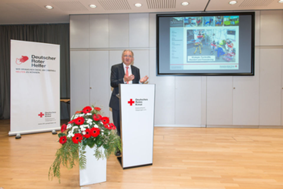 Auch Oberbürgermeister Guido Till betonte die vertrauensvolle Zusammenarbeit auf vielen Ebenen, sei es zwischen Feuerwehr und dem DRK, in Bezug auf das Familienzentrum oder eben auf die Integrierte Leitstelle. Wie die anderen Redner bedankte auch er sich für das ehrenamtliche und hauptamtliche Engagement der DRKler.