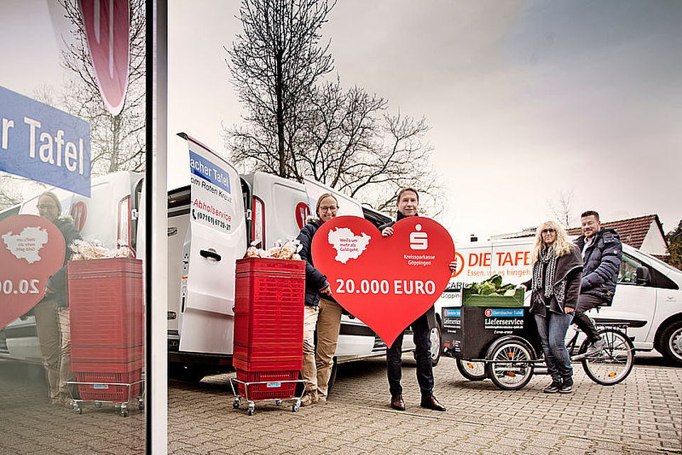 Jetzt überreichte er den Tafeln in Ebersbach, Geislingen, Göppingen und Süßen jeweils 5000 Euro. Träger der Tafeln sind der Kreisverband Göppingen des Deutschen Roten Kreuzes (DRK) beziehungsweise die Caritas Fils-Neckar-Alb. Das Prinzip der ­Tafelläden lebe davon, dass Hersteller, Groß- und Einzelhändler, Bäckereien und Märkte Waren spenden, heißt es in einer Pressemitteilung der Kreissparkasse. „Dabei handelt es sich etwa um qualitativ gute Lebensmittel, die bei Lebensmittelhändlern überschüssig sind und entsorgt worden wären“, sagt Sabine Rauch, Tafelladenleiterin in Ebersbach.  „Überschüsse werden dorthin umgeleitet, wo Bedarf besteht“, ergänzt Helga Rütten, Fachleiterin Solidarität bei der Caritas Fils-Neckar-Alb.