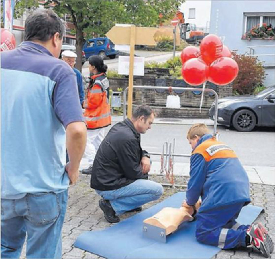Bad Überkingen - Anfangs hatte die Bad Überkinger Jugendfeuerwehr Bedenken. Wie würden die Passanten eine Reanimations-Übung vor den Bäckereien Bek und Siehler aufnehmen? Doch dann war Bürgermeister Matthias Heim einer der Ersten, die das Projekt unterstützten und sich mit vollem Erfolg an der Laien-Reanimation versuchten. „Man kann nichts falsch machen“, sagte er. „Der einzige Fehler ist nichts zu tun.“
