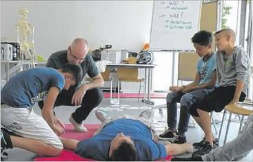 Mit viel Humor, unmissverständlichen Angaben und realitätsnahen Vorführungen unterrichteten die beiden Erste Hilfe-Experten viel Wissenswertes. Während der 46-jährige Alaiddin immer wieder einbrachte, wie dies oder jenes in Syrien üblich ist, begeisterten sich die älteren Jungs vor allem für die Motorradhelme und das richtige Abnehmen derselben bei einem Unfall. Der erst fünfjährige Rayan zeigte stolz ein perfektes Fingerpflaster, Selma, Naime und Gjyla bewiesen großes Geschick im Anlegen von Verbänden und Arbenita war die Meisterin der Herzdruckmassage.
