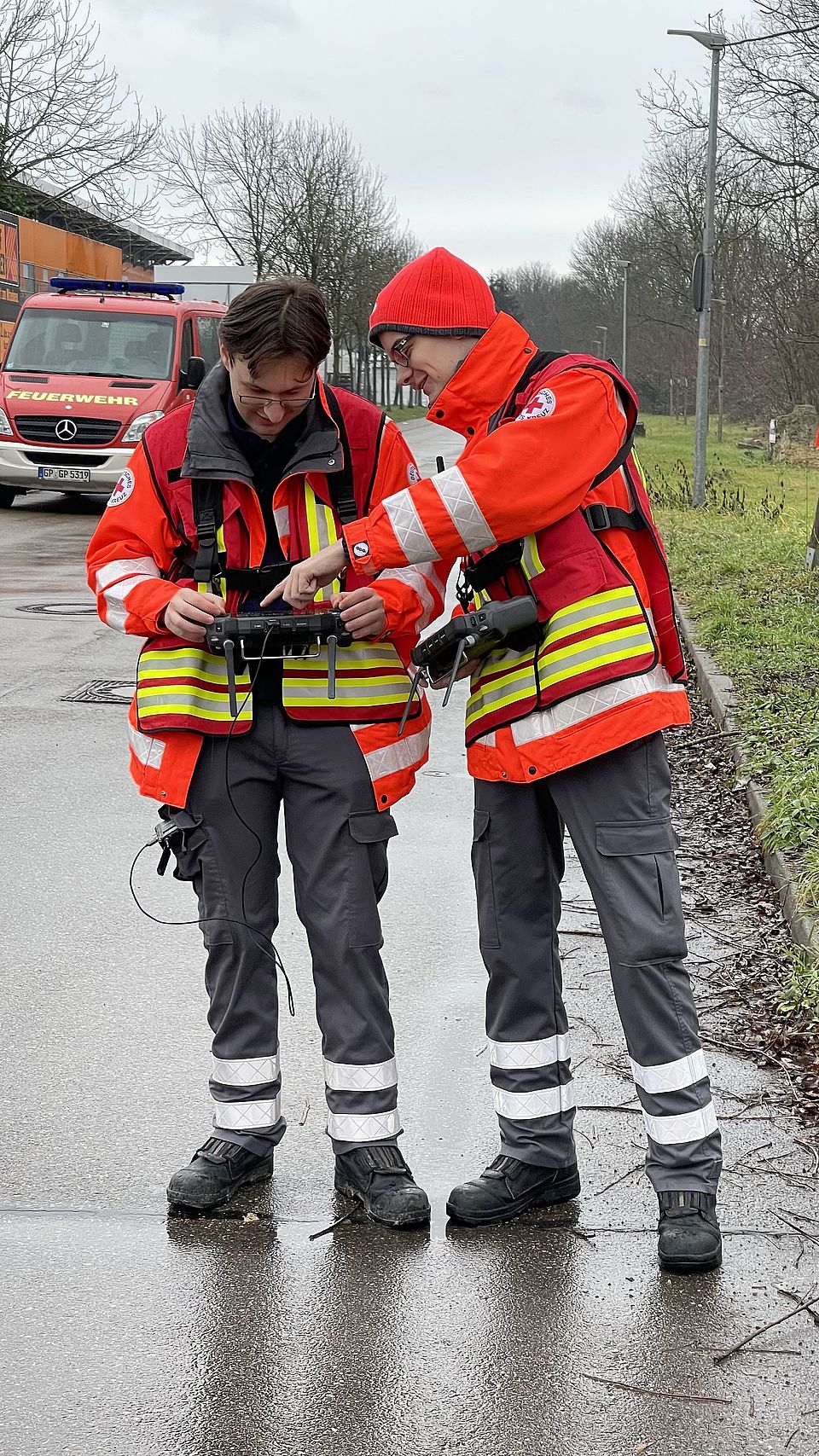 Die Drohne des DRK Unteres Filstal-Schlierbach, eine DJI Matrice M30T, hat ca. 12.000,- € gekostet und steht allen Blaulichtorganisationen kostenfrei zu Verfügung. „Die Anschaffung der Drohne ist eine Sache,“ erklärt Bereitschaftsleiter Torsten S. „weiteres Zubehör, wie zusätzliche Akkus, Bildschirme, Laserentfernungsmesser und Softwarelizenzen schlagen mit nochmals ca. 10.000,- € zu Buche. Wir nutzen mittlerweile eine Software, mit der wir schon auf der Anfahrt zur Einsatzstelle unsere Flugroute planen können, die die Drohne dann vollautomatisch abfliegt. Und seit neuestem können alle am Einsatz Beteiligten die Live-Bilder der Drohne auf ihrem mobilen Gerät verfolgen, wenn sie den Zugangscode zu unserer Webseite von uns haben.“ Um die Technik im Einsatzfall sicher zu beherrschen, treffen sich die Helfer der Gruppe jede Woche donnerstags um 18.30 Uhr am DRK in Schlierbach und freuen sich auf weitere Unterstützung.