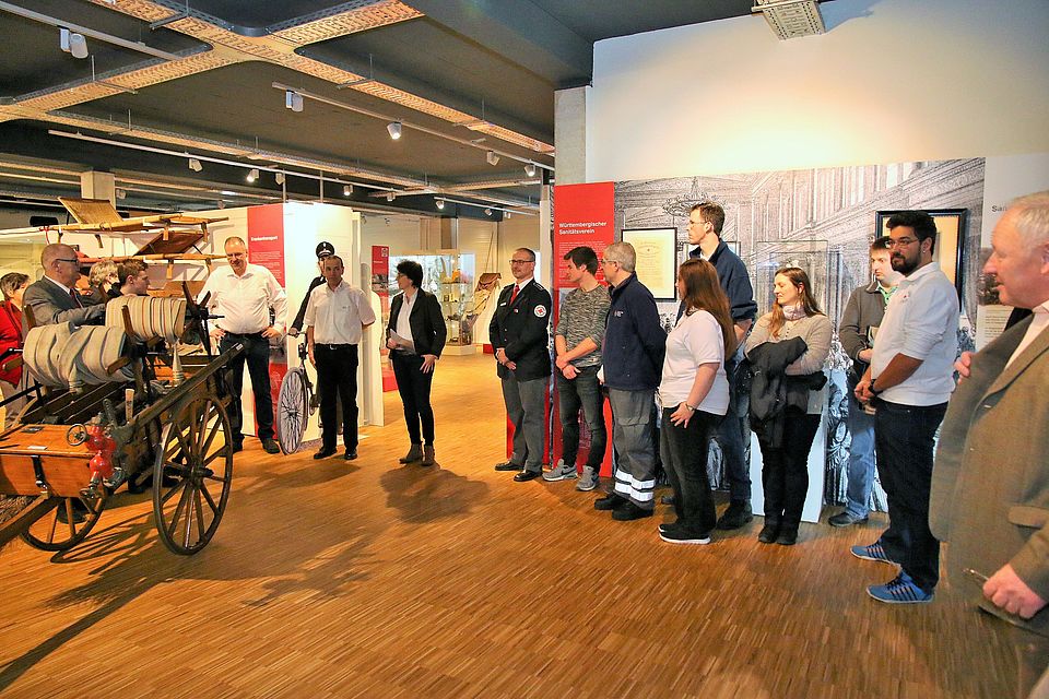 Das Deutsche Rote Kreuz und die Feuerwehr bilden eine Einheit. Das ist bei zahlreichen Notfall-Einsätzen der Fall – und das wird in der neuen Wechselausstellung im Geislinger Rotkreuz-Landesmuseum deutlich. Anfang März war offizielle Einweihung dieser Ausstellung, in der eine Vielzahl unterschiedlicher Exponate einen tiefen Einblick in die Geschichte der Feuerwehr ermöglichen. „Feurio“ und „Tutti fratelli“ lautet ihr Titel, zu Deutsch: Feuer und alle sind Brüder.