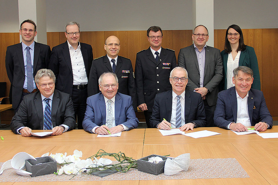 „Wir brauchten ein Update für die Zusammenarbeit des seit 2006 integrierten Ansatzes. Gründe sind der Aufgabenzuwachs, neue Technik und Einsatzleittechnik, mehr Personal und mehr Räume“, stellte Landrat Edgar Wolff bei der Unterzeichnung des neuen Vertrages im Helfenstein-Saal des Landratsamtes am Mittwochnachmittag fest. Nach umfangreichen Verhandlungen sei es gelungen, „für die unterschiedlichen Interessenlagen gute Kompromisse zu finden, in denen DRK, Stadt und Landkreis ihre Interessen wiederfinden. Der neue Vertrag ist eine Weichenstellung für eine gute Zukunft und stellt den Schutz und die Sicherheit der Bevölkerung auf feste Beine“, zeigte er sich überzeugt.