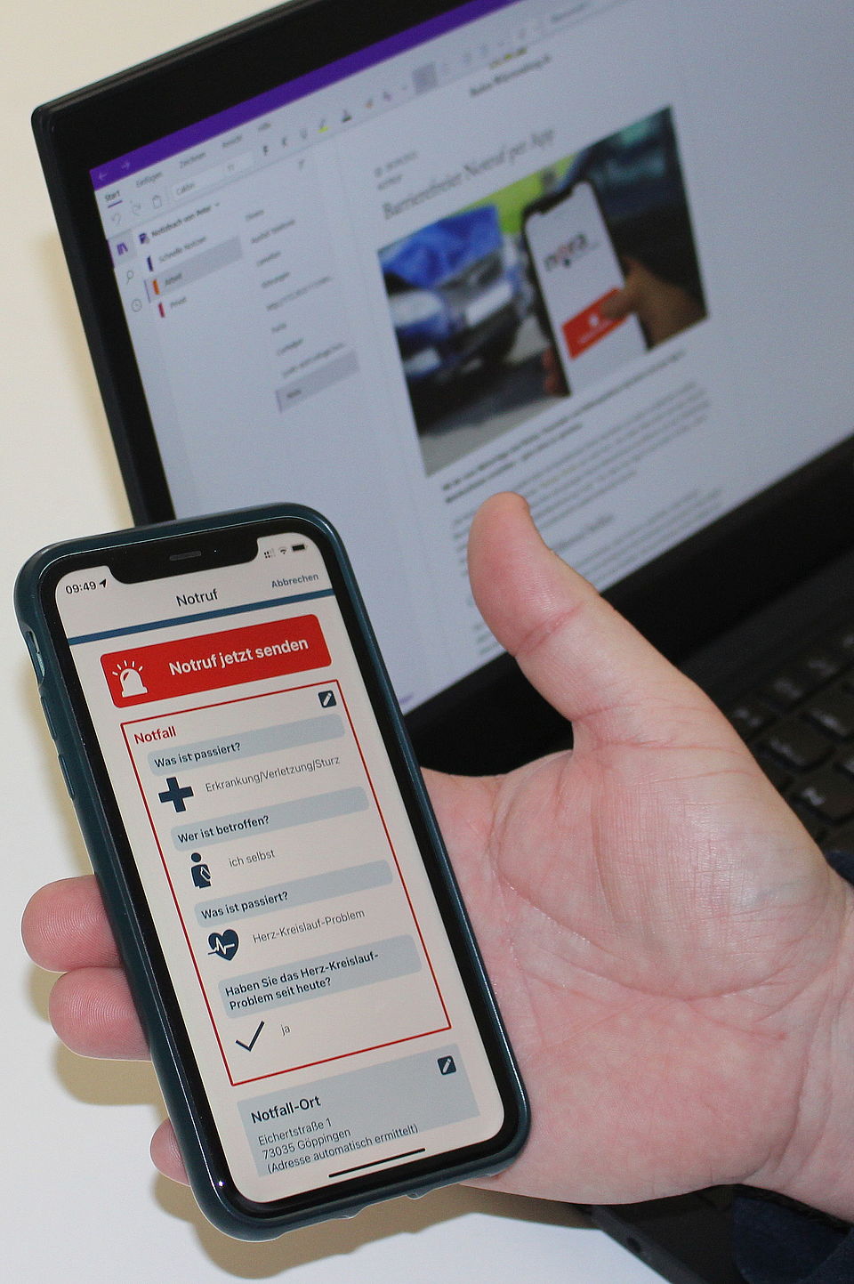 Peter Welsch demonstriert an seinem Smartphone, wie einfach die App zu bedienen ist. Die App fragt verschiedene Parameter ab und leitet dann den Notruf an die nächstgelegene und zuständige Einsatzzentrale weiter. Die Disponentin oder der Disponent dort muss nun weitere Informationen abfragen, wie in einem Chat. „Das ist aufwändig und kostet auch viel Zeit“, ist die Erfahrung von Peter Welsch. Deshalb sei der Notruf über das Telefon immer die bessere Lösung. „Ein erfahrener und qualifizierter Disponent kann in einem Telefongespräch viele Informationen gleichzeitig bekommen, die er im Chat erst abfragen muss.“ Gleichwohl sei die App für all die Menschen, die ein Handikap haben, eine sinnvolle, schnelle und zuverlässige Möglichkeit, „einen Notfall zu melden“.