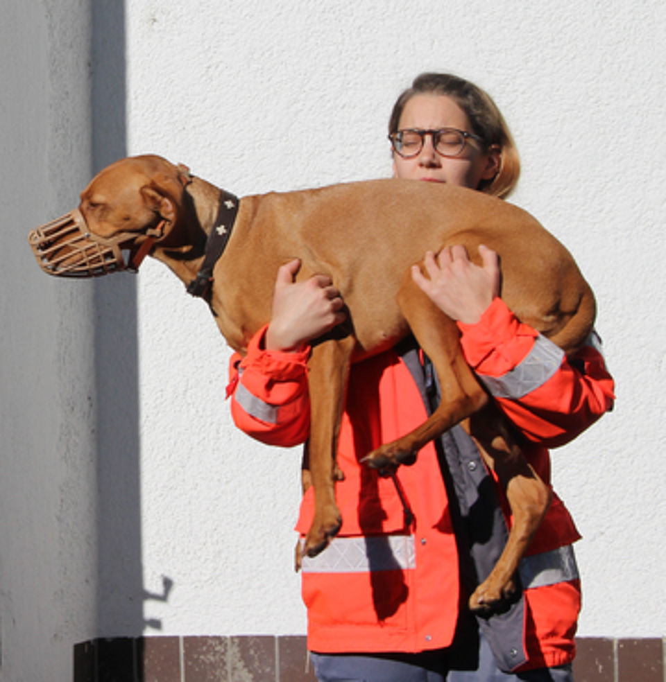 Auch Klaus Mayer ist zufrieden. Der Schwäbisch Gmünder lobt seine Mischlingshündin Paula. „Sie hat super angezeigt und wurde mit einer Eins benotet“, freut sich der Hundeführer. Paula hatte im Gelände einen vermissten Menschen suchen müssen, hatte schnell gefunden und dann gebellt. So konnte der Hundeführer das „Opfer“ finden und versorgen.