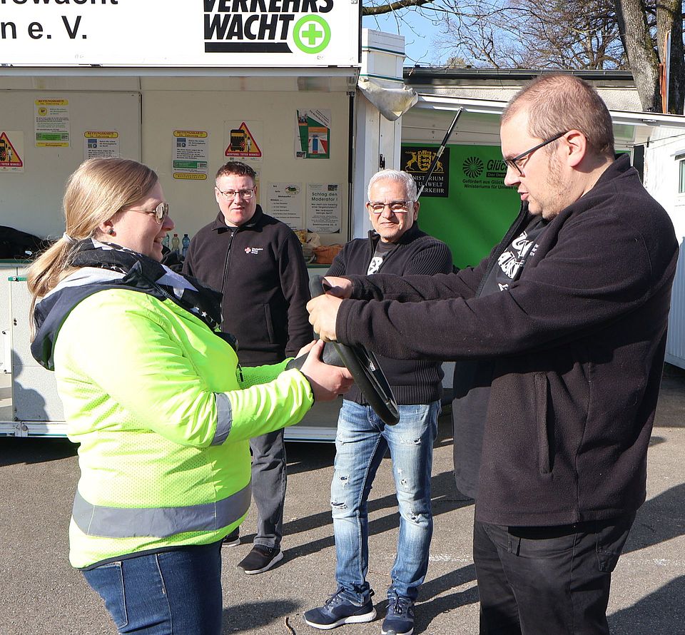 Es ist gute Tradition beim Roten Kreuz im Landkreis, regelmäßig alle Rotkreuzler*innen zu den verschiedensten Aspekten und Herausforderungen der täglichen Arbeit weiterzubilden. Entsprechend vielseitig war das Fortbildungsprogramm, das Tobias Neugebauer und sein Team zusammengestellt hatte, auch in diesem Jahr. Nach dem Frühstück standen ganz unterschiedliche Angebote auf dem Programm: Wie sieht das Atemwegsmanagement beim Rettungsdienst aus? Wie ist die „Sprache“ von Hunden zu interpretieren? Und was gehört in die homöopathische Hausapotheke der Vierbeiner? Wie gestaltet sich Biographiearbeit als Basis für professionelles Handeln? Wie sieht die Notrufbearbeitung bei der Integrierten Leitstelle aus oder was ist beim Blutstillen zu beachten? Auf großes Interesse stieß auch das Fahrsicherheitstraining, zu dem Sonja, Thomas und Karl-Heinz Hild von der Kreisverkehrswacht Göppingen insbesondere die Fahrer*innen der Sozialen Dienste eingeladen hatten. „Autofahren darf nicht zur Routine werden – schon gar nicht, wenn Kinder im Auto sitzen“, betonte die erfahrene Autofahrerin Gisela Hosters. Sie fährt seit vielen Jahr für den DRK-Kreisverband und war am Ende des Trainings begeistert: „Es war optimal. Vieles, was ich bei der Führerscheinprüfung vor vielen Jahren gelernt hatte, kam wieder zum Vorschein“, gesteht sie lachend ein.