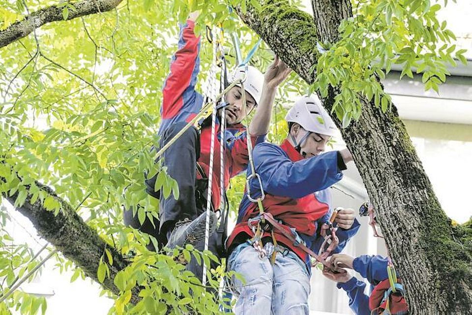 Nach oben ging es naturgemäß bei der Bergwacht Geislingen-Wiesensteig, die sich am Forellen-Brunnen mit Mimen in der Höhenrettung übte und hierbei allerlei Besucher anzog. Die Geislinger Feuerwehr zeigte mit einer der Drehleitern, dass ihre Helfer mitunter einigermaßen höhentauglich sein müssen, um ihren Aufgaben gewachsen zu sein. Hier jedoch blieb es beim Hochfahren des Tragekorbs – ohne geprobte Opferrettung.