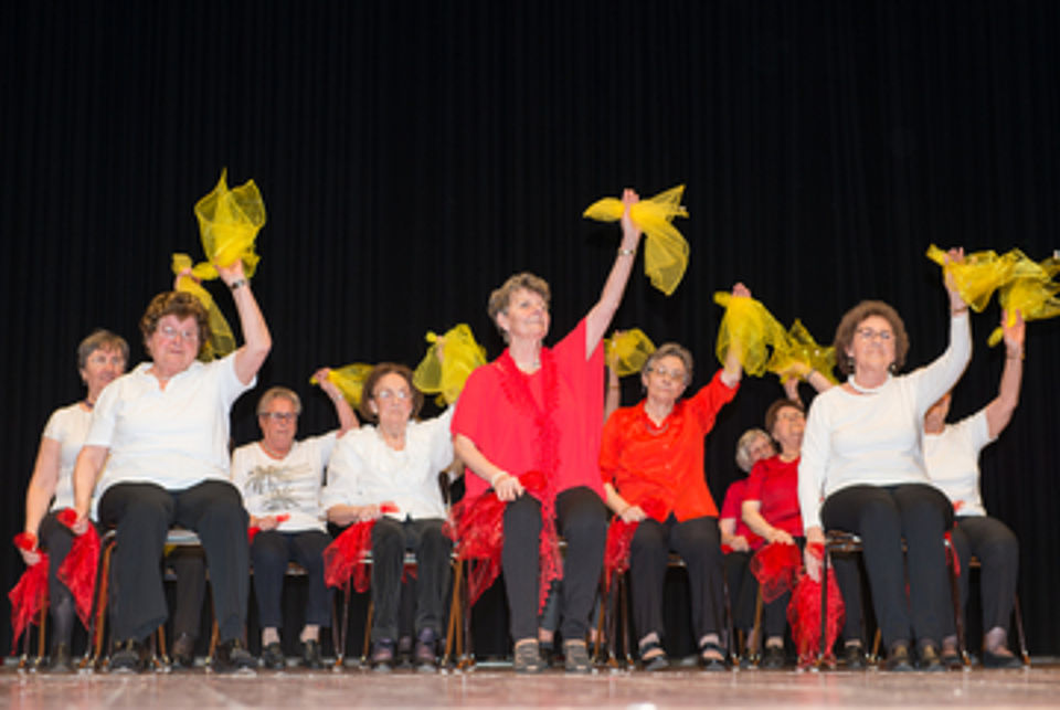 Dass dies auch noch großen Spaß machen kann, zeigte eindrucksvoll das abwechslungsreiche Programm. Unter der professionellen Leitung der gut ausgebildeten Kursleiterinnen hatten die verschiedenen Gymnastik- und Tanzgruppen ein buntes Programm eingeübt, das eben augenscheinlich machte, wie wohl sich die Seniorinnen und Senioren in ihren Gruppen fühlen, wie große Freude ihnen das gemeinsame Sporttreiben macht. Und so versprach die ebenfalls sehr routinierte Conférencière Silvia Eisele nicht zu viel, als sie allen „ein paar schöne und unterhaltsame Stunden“ wünschte.