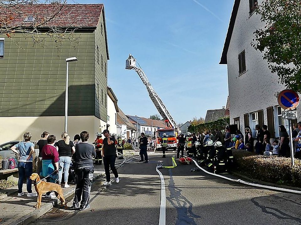Schlierbach - Mit einem herausfordernden Einsatzszenario war die Schlierbacher Feuerwehr, unterstützt von der Drehleiter aus Uhingen, der atemschutznotfalltrainierten Staffel aus Eislingen und der DRK-Bereitschaft Schlierbach, bei ihrer Hauptübung konfrontiert: Die Leitstelle Göppingen alarmierte die Feuerwehr aufgrund eines brennenden Pkws in einer Garage. Vor Ort stellte sich heraus, dass das Feuer bereits auf das darüberliegende Wohnhaus übergegriffen hatte. In diesem Gebäude waren mehrere Anwohner durch den dichten Rauch eingeschlossen.