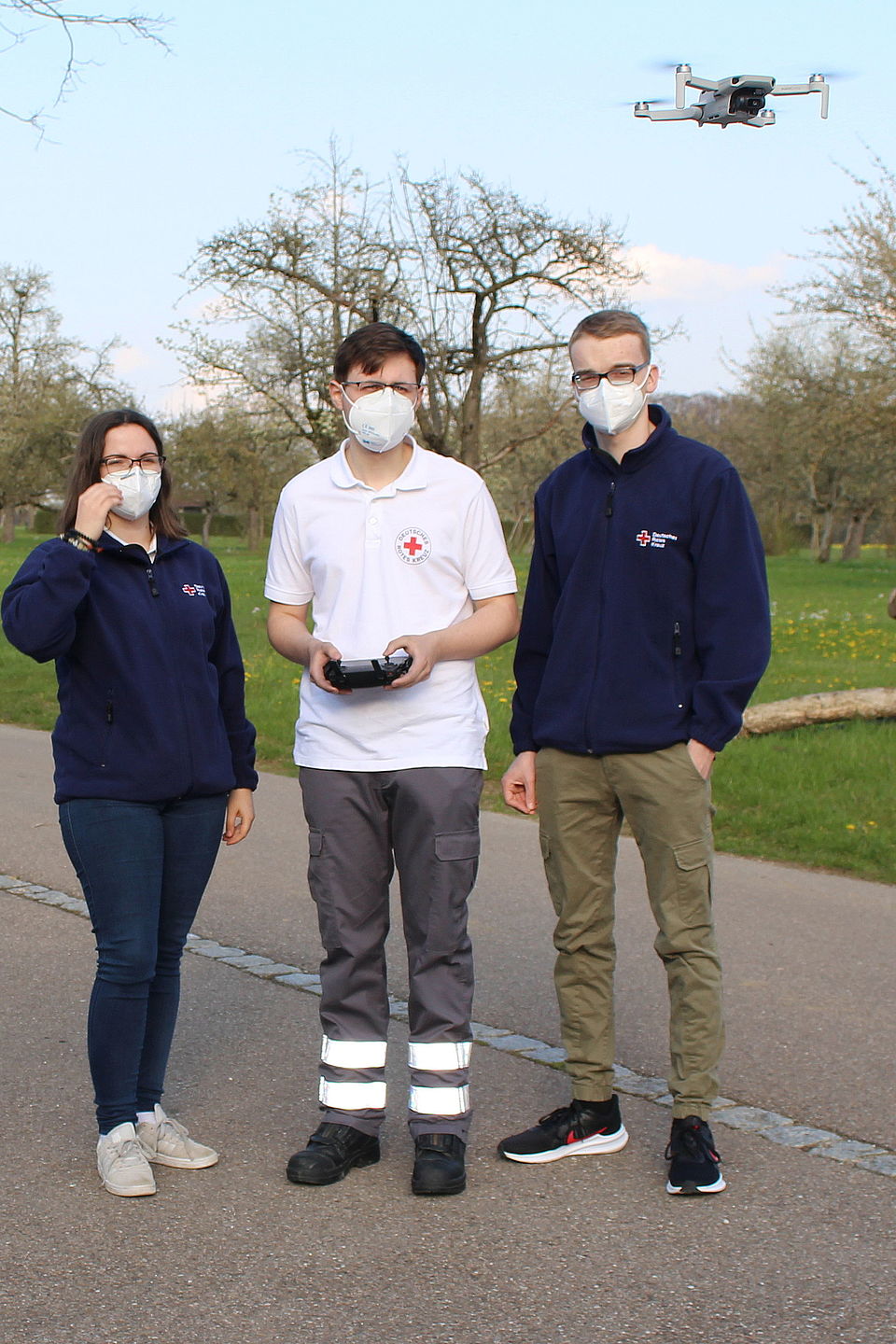 Leise schnurrt die Drohne. Wolfram Wonnenberg hat die Fernsteuerung des Hightech-Gerätes mit seinem Smartphone verbunden und lässt es langsam aufsteigen. Der 20-Jährige leitet die Drohnengruppe des DRK-Ortsvereines Unteres Filstal-Schlierbach und hat sich zum Drohnenpiloten qualifizieren lassen. Es ist eine Übungsdrohne, mit der sie die notwendige Routine trainiert haben.
