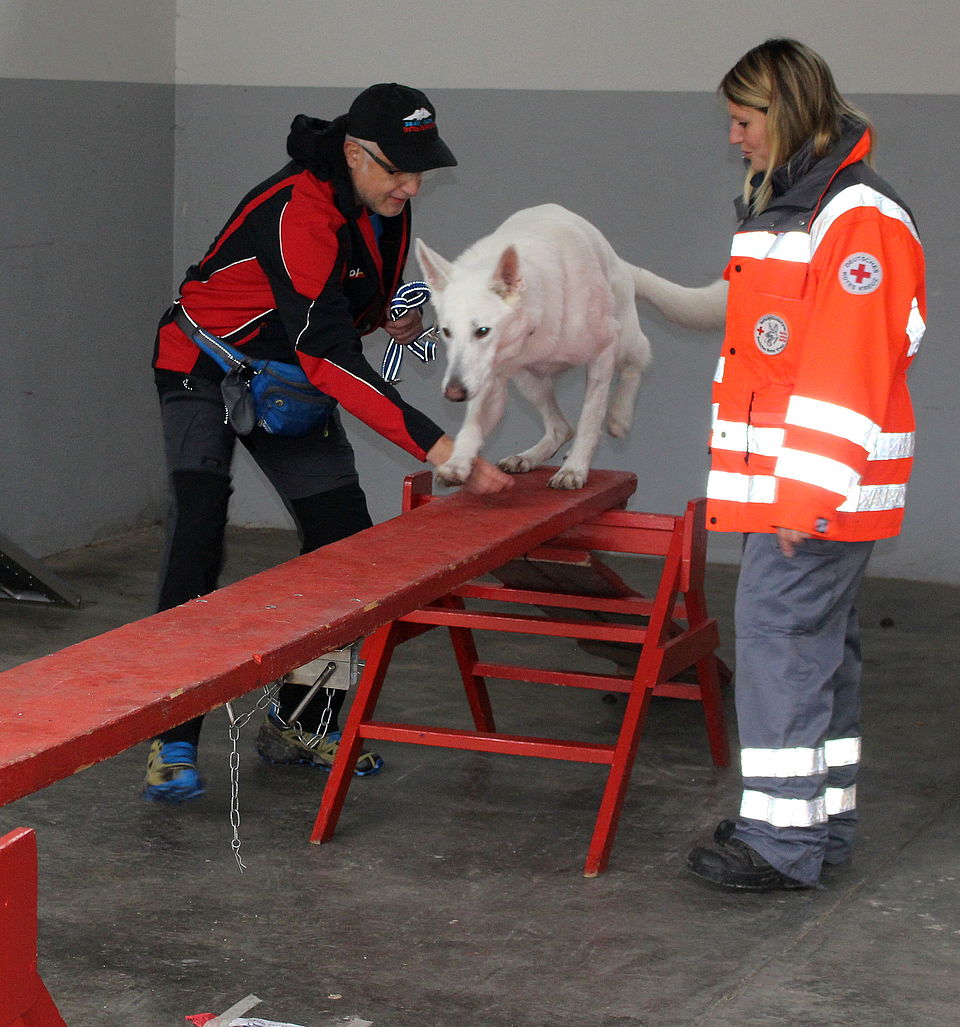 Maya, eine Rottweiler-Labrador-Mischlingshündin ist wie auch der Mischling Moscow, der Dalmatiner Verdi oder der Schweizer weiße Schäferhund Odin mindestens so aufgeregt wie Frauchen und Herrchen. Können Sie doch an diesem Schnuppertag herausfinden, ob ihnen und dem Hund die Aufgabe als Rettungshundeteam zusagt und ob sie sich grundsätzlich eignen.