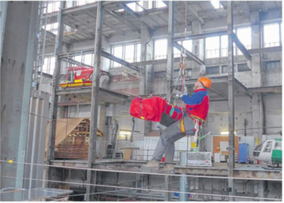 In den Industrie- und technischen Versorgungsanlagen lassen sich eine Vielzahl an Notfall-Szenarien nachstellen, wie sie in der Realität vorkommen können und für welche die Bergretter gewappnet sein müssen. Strommasten, Schächte, Kessel, Gebäudekanten und Kräne dienten dabei als Übungsobjekte.