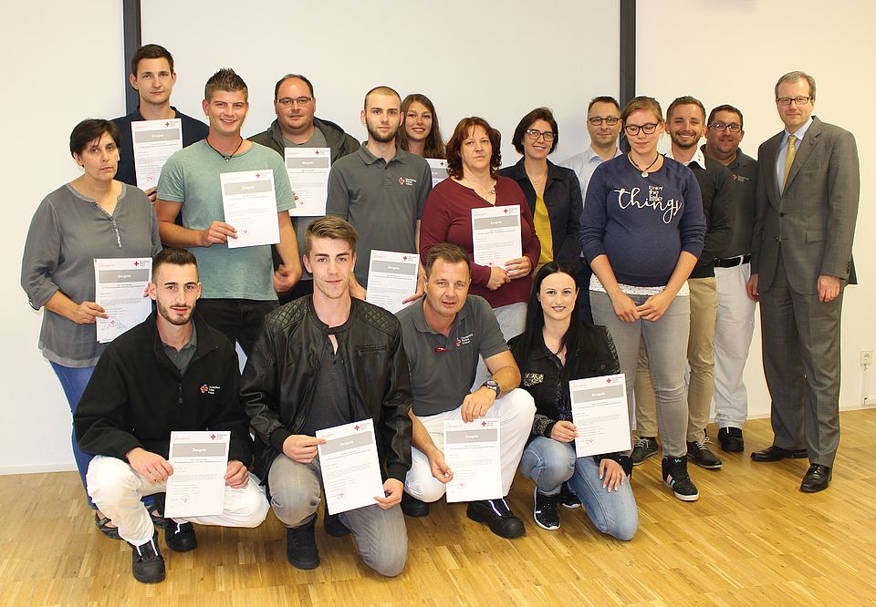 „Das DRK hält einen ganzen Werkzeugkasten für zahlreiche gesellschaftliche Probleme bereit. Der Rettungsdienst ist dabei das Herzstück“, betonte Heike Till, die stellvertretende Vorsitzende des DRK-Kreisverbandes Göppingen anlässlich der Verleihung der Urkunden an die frisch gebackenen Rettungssanitäterinnen und –sanitäter in der DRK-Geschäftsstelle.