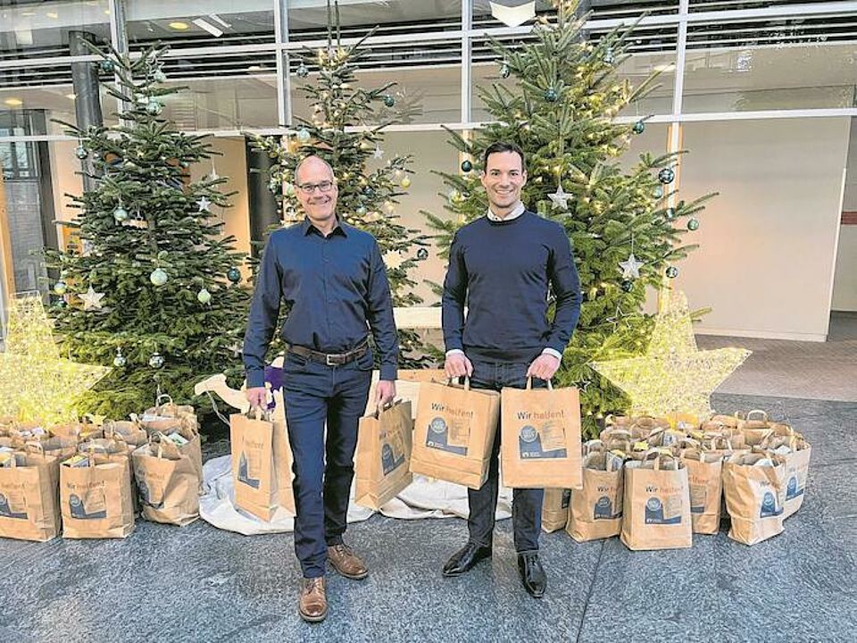 Bereits im März 2023 hatte die Genossenschaftsbank den Tafelläden insgesamt 20 000 Euro für ihre wichtige Arbeit zur Verfügung gestellt. Zusätzlich riefen die beiden Volksbank-Vorstände Dr. Lukas Kuhn und Michael Beschoner in der Betriebsversammlung die Mitarbeitenden dazu auf, sich aktiv an der diesjährigen Weihnachtsaktion zu beteiligen und Lebensmittel für die vier Tafelläden des Landkreises – Carisatt in Göppingen, Süßen und Geislingen sowie DRK-Tafelladen in Ebersbach – zu kaufen. Die Spende sollte insbesondere Lebensmittel mit einem sehr langen Mindesthaltbarkeitsdatum wie Mehl, Zucker, Reis, Tee, Marmelade, H-Milch, Konserven, Butterkekse und Öl, aber auch Drogerieartikel wie Zahncreme und Kosmetiktücher umfassen – insgesamt alles Artikel, die es in Tafelläden nur sehr selten zu kaufen gibt. Etwa 15 bis 20 Euro kostete jede Lebensmitteltüte im Einkauf. Die Resonanz sei überwältigend gewesen, heißt es in der Mitteilung, sodass fast 200 Lebensmitteltüten zusammenkamen, die an die Tafelläden übergeben wurden. Ergänzt wurde die Spende durch 500 Schoko-Nikoläuse und mehrere Großpackungen Schoko-Adventskalender, zur Verfügung gestellt von der Volksbank Göppingen und der Bausparkasse Schwäbisch Hall.