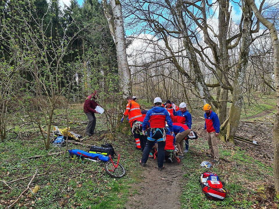 Donzdorf - Eine 70-jährige Wanderin rutschte am Freitag gegen 11.50 Uhr auf einem glitschigen Wanderweg am Messelstein oberhalb von Donzdorf aus und erlitt eine schmerzhafte Verletzung des Sprunggelenks. Ihre Angehörigen setzten daraufhin einen Notruf ab. Notärztin und Rettungsdienst übernahmen die Erstversorgung der Patientin, die Einsatzkräfte der Bergwachten Geislingen-Wiesensteig und Göppingen unterstützten sie dabei und übernahmen den Abtransport mittels Gebirgstrage. Anschließend wurde die Verletzte mit einem Rettungswagen in eine nahe Klinik verbracht. Die Bergwacht war mit zwölf Einsatzkräften und drei Fahrzeugen eine Stunde lang im Einsatz.