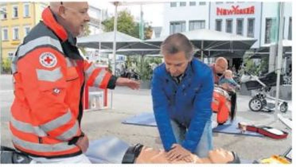 - Am 20. September sind das DRK und Ärzte der Helfenstein Klinik Geislingen in der Geislinger Innenstadt aktiv. Von 17.00 bis 20.00 Uhr demonstrieren sie im Nel Mezzo-Einkaufszentrum die Herz-Lungen-Wiederbelebung und laden interessierte Passanten zum Mitmachen ein.
