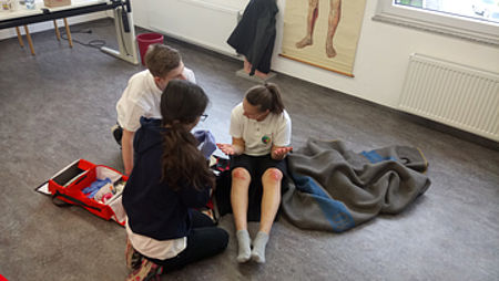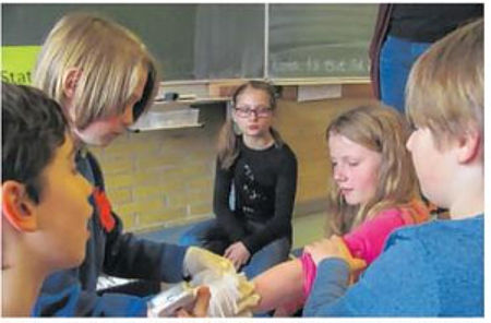 Einen Druckverband anlegen war nur einer der Handgriffe, die Vertreter des Roten Kreuzes am Dienstag Viertklässlern der Heinrich-Schickardt-Schule in Bad Boll beibrachten.