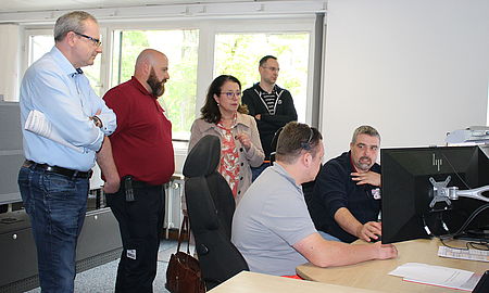 Die Grünenpolitikerin Ayla Cataltepe informierte sich in der erweiterten Integrierten Leitstelle des Landkreises über die Arbeit der Notfalleinrichtung und sprach dem Team ihre Hochachtung aus.