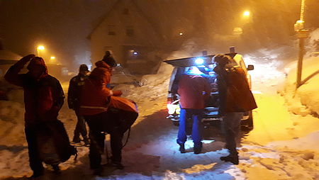 Auf Grund des heftigen Schneefalls und der dadurch schneebedeckten Straßen, konnte der Rettungswagen die Verletzte nicht erreichen. Deshalb rückte die Bergwacht mit ihren Geländefahrzeugen nach Hohenstaufen aus. Ausgerüstet mit Allradantrieb und Schneeketten, konnte…