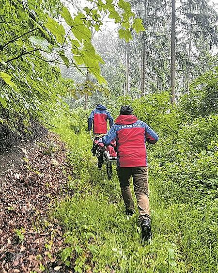 Am Donnerstagabend wird die Bergwacht in die Nähe der Zachersmühle gerufen. Ein Radfahrer ist schwer gestürzt, der Rettungswagen kann nicht zu ihm.